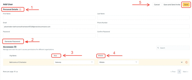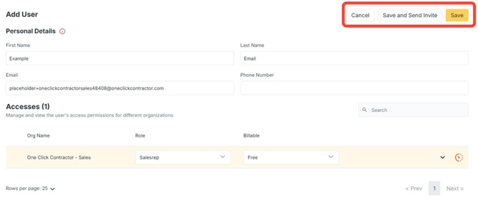 - Save and Send Invite: Creates the user and automatically emails the login information to them.