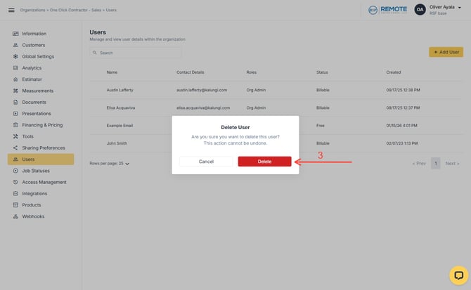Adding, Modifying, and Deleting a User in One Click Contractor