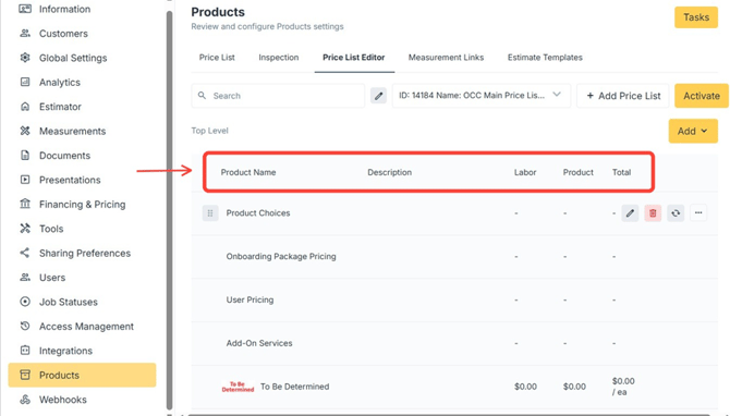 Price Lists in One Click Contractor define the products, labor, and pricing used by the estimator when creating estimates. They serve as the foundation for accurate and consistent pricing across the platform.