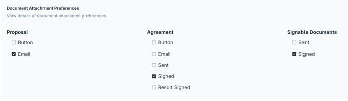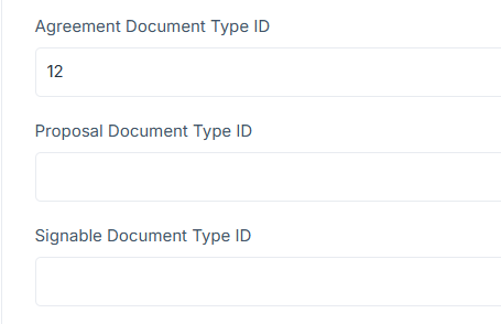 When the user works a job in One Click Contractor, documents can go back to the corresponding Lead Perfection record based on the settings on the user's org in OCC and the Document Type IDs entered for each document type. In the below example, Signed Agreements would go to the documents section in Lead Perfection with the document title that corresponds to the Document Type ID 12 in Lead Perfection. In this example, Proposals and Signable documents do not have a Document Type ID entered in OCC, so they would also default to ID 12 for a name in Lead Perfection.