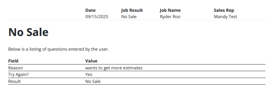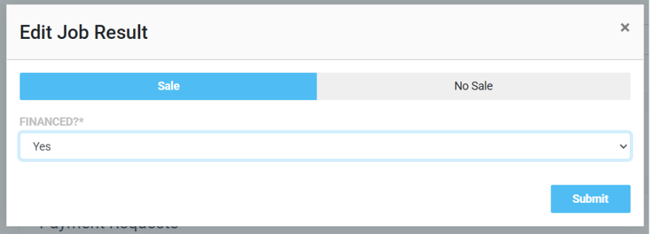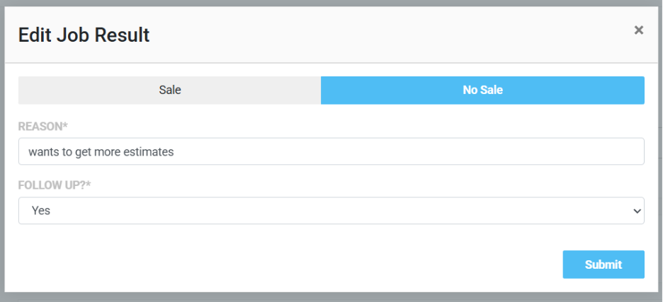 Clicking the Result button will give the user the option of Sale or No Sale: