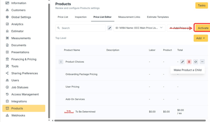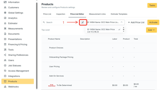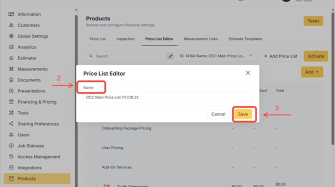 After a Price List has been updated, it must be properly renamed and activated to ensure estimates use the correct pricing version. This article outlines how to rename a Price List, activate it, and apply best practices for version control.
