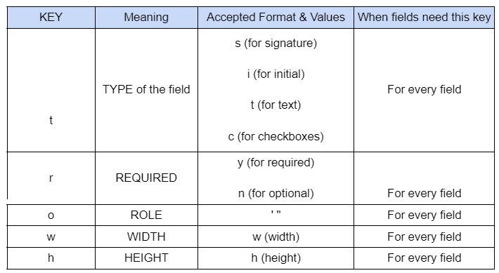 Each Customer document which needs a signature will require some coding on the backend from you. It’s important to understand what each character represents to ensure you have the correct coding for each instance of signature.
